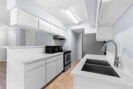 Welcome to convenient city living in this centrally located, 2nd floor 2BR-2Bath condo unit with a reserved covered parking spot and excellent amenities in a secure gated community. The corner unit with a private staircase entry, features an open layout with tons of natural light, new flooring, new Carrera quartz countertops and a private balcony. Located near HEB, NRG Center, Highway 610, and 288, with convenient access to shopping, dining, and entertainment. Refrigerator, washer, dryer included and water utility bill paid at listing price. Housing program tenants welcome.