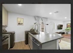 The kitchen has been updated with modern cabinets, stainless steel appliances, upgraded fixtures, and a convenient in-unit washer and dryer (included). Both bedrooms feature their own renovated bathrooms with quality materials and contemporary design. The home also includes updated HVAC with AC for year-round comfort.