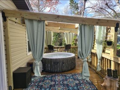 The great thing about this cottage is that it's fully furnished and all utilites are included, so you can really feel like you're on vacation. The cottage is cozy and is onba dead end street with no through traffic. The wrap around deck provides ample amount of relaxation with a hot tub and plenty of sitting spaces to enjoy.