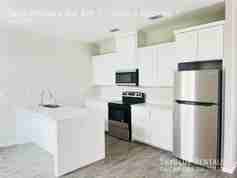 A must see unit with an open layout, modern flooring, Granite Countertops, modern lighting fixtures including recessed lighting throughout the unit, modern sleek two-toned cabinets. Vaulted ceilings with a fan in Living room and bedrooms. All bedrooms come with double chrome closet rods, master bathroom has a glass walk-in shower and custom built-in drawers.