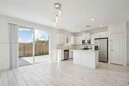 This stunning FRESHLY PAINTED 4-bedroom, 3-bath home, built in 2021, is located in one of Homestead’s top gated communities. Move-in ready, featuring an open-concept layout, this home includes a chef’s kitchen with stainless steel appliances, white quartz countertops, and modern cabinetry. The first floor offers a bedroom and full bath, perfect for guests or a home office. The spacious living area opens to a fenced patio, ideal for entertaining. Upgrades include ceramic tile flooring on the first floor. HOA benefits include basic cable, trash removal, two clubhouses, pools, a gym, playground, and dog park. Close to Baptist Hospital, shopping centers, and the Turnpike.