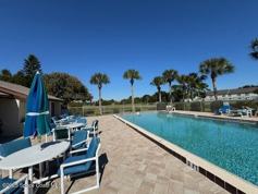 ENJOY Maintenance Free living with Water, Cable, Internet and Trash included in your monthly rent. Absolutely lovely 2/2 Ground level Golf course view. This unit is centrally located in wonderful community which features a nice club house and Private community pool. Unit boasts Gorgeous updated kitchen with white cabinets, quartz countertops, and new stainless appliances. Kitchen has portable center Island that can be used for additional storage space. Very spacious unit with high ceilings, private lanai off dining room for your early morning coffee. Unit includes W/D laundry room off the very spacious back patio. Unit has Tile, Wood laminate, and carpet in the bedrooms with brand new carpet in the guest bedroom. Make an appointment to view today. This is a wonderful opportunity before its gone!