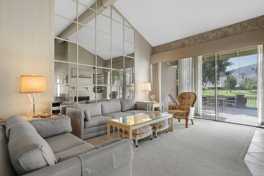 Long-term lease available in the highly desirable Monterey Country Club. This beautifully furnished (or unfurnished) end unit offers exceptional privacy, quiet surroundings, and breathtaking views of the greenbelt, golf course, and Santa Rosa Mountains. The spacious patio is perfect for relaxing or entertaining while enjoying the peaceful setting. This well-maintained home features new appliances, new carpet in both bedrooms, LVP flooring in the primary bathroom, and several additional recent improvements throughout. The floor plan includes two large bedrooms plus a flexible third room ideal as an office, guest space, or bonus room. The home offers a seamless flow with vaulted ceilings, a cozy fireplace, a breakfast nook, a dining area, and an elegantly converted atrium. Additional features include a 2-car garage, gated patio area, multiple outdoor sitting areas with BBQ grill, flat-screen TV, shutters, dual vanities, washer/dryer, and abundant storage. Light, bright, and extremely clean, this end-unit offers comfort, convenience, and privacy. Located minutes from grocery stores, Starbucks, Costco, The River, movie theaters, Trader Joe's, and numerous everyday amenities. A perfect rental in a fantastic location, 175 Gran Via is a beautiful, cozy, fun, clean, peaceful place to rent!