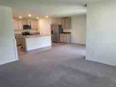 This layout optimizes living spaces with an open concept kitchen which overlooks the living area, dining room, and the patio with sliding glass doors