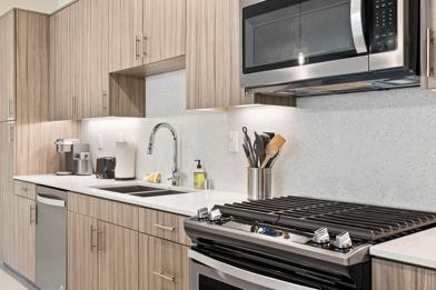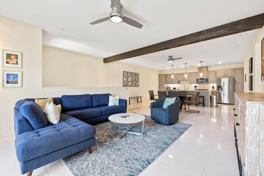 Available starting december 1 for annual lease. Newer construction 2 bed + 2.5 bath, luxury unit WITH GORGEOUS MOUNTAIN & POOL VIEWS from the patio and the master bedroom! Enjoy open concept living in the spacious Great Room/Living/Kitchen/Dining area, 9' ceilings with exposed beam, 8' tall sliders onto patio, clerestory windows, quartz countertops, custom cabinetry and upgraded large format tile floors. Both bedrooms have their own full bath and there is a powder room for guests. Convenient in-unit, full size washer and dryer & dual ceiling fans in dining and livIng room. Close to downtown Palm Springs and all the action. The gated community includes resort style pool/spa, poolside fire feature and seating area, outdoor grills and dog park.