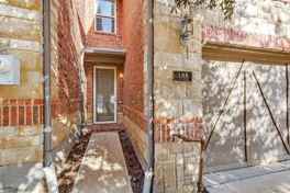 This beautiful, quiet, and safe 2-story townhome is full of refined details and elegant features. The living room, dining area, and kitchen boast high-end hardwood flooring, while the stairs, all bedrooms, and the second upstairs living space are finished with luxury vinyl plank (LVP) flooring — absolutely no carpet throughout! Striking wrought iron balusters add a touch of sophistication. The open-concept living, dining, and kitchen areas flow seamlessly together. The entire home has been freshly painted in a bright, neutral palette, and abundant natural light creates a warm and inviting atmosphere. Elegant interior shutters are installed on the windows, completing the tasteful interior design. The kitchen is upgraded with durable and elegant quartz surfaces, new ceramic tile backsplash, a gas cooktop, and a spacious breakfast bar for extra seating — all offering modern convenience and style. The living area features a gas log fireplace and a wall of windows overlooking the outdoor deck, perfectly connected to the dining space. Upstairs, you'll find a spacious primary suite with a vaulted ceiling, a large walk-in closet (WIC), and a newly updated luxury bathroom with dual sinks, a garden tub, and a separate shower- recently upgraded. Also on the second floor are a cozy second living area, two additional bedrooms, a full shared bathroom, a laundry room, and excellent storage space. All lighting fixtures throughout the home have been newly installed, including flush-mount LED lights that brighten living Area. The outdoor deck expands the living space and is perfect for entertaining guests. The home features an attractive stone and brick exterior with beautifully maintained landscaping, and the community offers a large swimming pool. Located in a convenient area with easy access to I-35 and Highway 121, close to local shopping centers and a variety of restaurants.