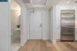 Beautiful kitchen featuring white cabinets, stainless steel Kitchen aid full size appliances, gas cooktop. Condo is located in DOWNTOWN Lafayette just steps from great restaurants, shopping and BART. Hardwood Floors, open floor plan, its contemporary design is enriched with top-tier upgrades. Elegant dining area gives way to a natural light filled living room with oversized windows,Spacious en-suite bedroom with walk in closet, tiled floor bathroom, dual sink vanity and shower over tub.