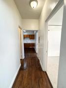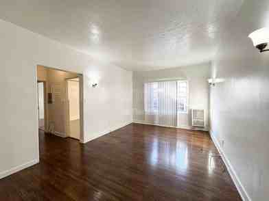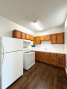 This bright one-bedroom features warm brown cabinets, a ceiling fan, and an interesting ventilation detail that adds character. With plenty of closet space, it’s perfect for keeping your home organized. Small pets are welcome, and water and gas are included in the rent.