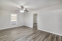 Charming move in ready property featuring 3 bedrooms and 1 full bathroom, along with a gated 1 car covered carport. Property has been updated throughout the interior to include fresh paint, new flooring, an updated stainless steel electric range, and much more! Spacious living area upon entry, leading you to the kitchen and dining area. The eat in kitchen has great cabinet and counter space, and also offers space for a full sized washer and dryer set. Primary bedroom has shelving and custom paneling, with a good sized closet. Two secondary bedrooms are spacious, and share an adjacent full bathroom near the primary bedroom. Enjoy a large fenced backyard, with the added conveniencce of a storage shed.
