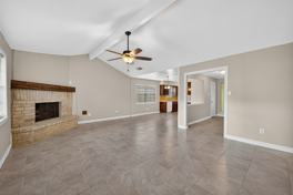 Step into comfort and charm in this beautifully updated 3-bedroom, 2-bath home! A brick exterior, decorative glass front door, and cozy covered porch welcome you. Inside, modern tile flooring, rich wood cabinetry, light countertops, and stylish mosaic tile accents create a bright and inviting atmosphere. Enjoy abundant natural light, a pass-through window, and sleek finishes in the bathrooms. The spacious backyard features lush green grass, mature trees, a wooden privacy fence, a patio area, and pergola. Perfect for outdoor activities, entertaining, or simply relaxing in your own private retreat.
