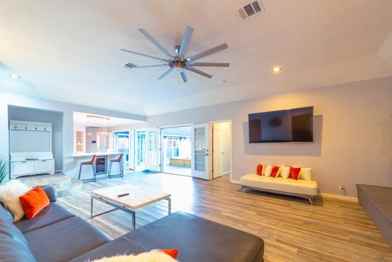 MOVE IN READY - This fully-furnished 2,131 sqft gem offers a perfect blend of modern elegance and resort-style relaxation. Step inside to discover a bright and airy open-concept layout featuring 3 spacious bedrooms and 2.5 bathrooms. The living area boasts soaring ceilings, and the kitchen is equipped with stainless steel appliances, beautiful countertops, and a lavish breakfast bar. The highlight? Your private backyard retreat! Dive into the Olympic-style sparkling pool, unwind the courtyard hot tub, or host gatherings in the lush, landscaped yard. The property was renovated in 2019 and is thoughtfully designed for hospitality at its finest! Located in a sought-after neighborhood (Home of the 5X State Champs North Shore Mustangs), this home is 2 mins away from NSSH, 5 miles from major energy corporations on the Houston ship channel, and 15 minutes from Downtown Houston and the Medical Center. Schedule your tour today and experience the magic of this unique property!