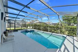 Gorgeous 5-bedroom, 4-bath fully furnished home in the Glenbrook Community! This spacious property features a fantastic floor plan with a separate living room and dining room at the front of the home, plus a combined family room and kitchen that overlooks the pool area. Enjoy a split-bedroom layout with two master suites, one upstairs and one downstairs, each with its own private en-suite bathroom for maximum comfort and privacy. Additionally, there is a bedroom and full bath located downstairs, while two more bedrooms and a shared full bath are upstairs, making this layout ideal for large or multi-generational families. The kitchen is a chef’s dream, boasting a beautiful quartz countertop. The home also includes a two-car garage and a stunning screened-in pool and hot tub, just steps from the family room. A pool heater ensures year-round enjoyment. Located in the desirable Glenbrook community, residents enjoy access to a clubhouse, business center, fitness room, game room, community pool, tennis court, and sand volleyball court. Conveniently close to theme parks, supermarkets, medical facilities, and schools, this home is perfect for both relaxation and convenience.