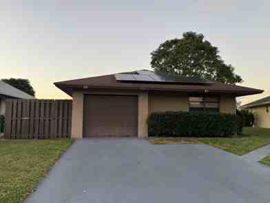 Very clean and well maintained. Vaulted ceilings, tile floors and a huge living area giving to this house so much space and air. Open concept living area perfect foe entertaining and relaxing. Updated secondary bathroom. Secluded private patio your own peaceful outdoor oasis. Having solar panels on the house is way to saves on your power bill. 1 car garage plus driveway parking. The house is located at a nice neighborhood close to Turnpike and shopping plaza. Community provides pool, tennis and playground. A great place to live. Mango and Papaya trees on the property.