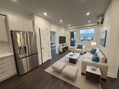 Designed for modern living, this 2 Bed & Flex unit features a thoughtful layout with 975-sq. ft. of well-utilized space. Its layout promotes natural flow from room to room, supporting both quiet routines and dynamic daily schedules. Each unit includes a kitchen with full-size LG appliances, in-suite laundry, and independent heat pumps in each bedroom and living space. The result is a comfortable and polished unit that feels both functional and refined.