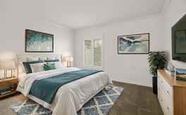 Completely level-in home with a private patio. Dual-pane windows, crown molding, and plantation shutters enhance the bright, inviting interior. The living room features sliding glass doors and sash windows that open to a tastefully landscaped patioideal for morning coffee, relaxation, or outdoor time with pets.