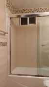 Living room, an eating area, 2 bedrooms, and a bathroom with shower over tub.