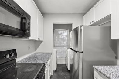 - Kitchen equipped with dishwasher, Refrigerator, washer dryer and ample counter & cabinet space. - Bright living area with a floor-to-ceiling brick fireplace