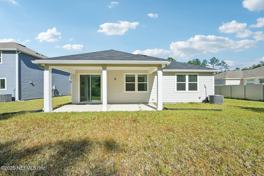 This fantastic home, built in 2023, showcases numerous upgraded features that set it apart. The property includes a spacious 3-car garage with sleek epoxy flooring, complemented by an extra-wide driveway that ensures convenient and easy parking. The interior is light & bright, accentuated by an open floor plan. Wood-look tile flooring extends through the entry, hallways, laundry room, kitchen, dining area, and family room, creating a seamless and modern appearance. The kitchen is equipped with stainless steel appliances, including a range with gas burners, making it ideal for culinary enthusiasts. Quartz countertops and an abundance of cabinets provide ample space for food preparation and storage, perfect for the chef in the family. The primary bathroom offers a large, glass-enclosed shower and a huge walk-in closet. Relax outdoors on the extended covered lanai, which leads to a private rear yard—an inviting space for entertaining or unwinding in peace.