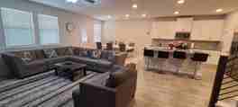 Welcome to this beautifully designed modern home located in Liberty Hill, TX. This spacious two-story residence boasts 2,702 square feet and includes five bedrooms, perfect for families or those needing extra space. With a charming brick and stone exterior, the property offers a warm, inviting atmosphere. Key features include an open-concept kitchen with white cabinetry and stainless steel appliances, complemented by a large kitchen island. The cozy living room is filled with natural light and overhead fans for added comfort. Enjoy evenings in the well-maintained backyard featuring a covered patio. The master suite offers a luxurious bathroom with dual sinks and a stylish glass-enclosed shower. Residents will also appreciate a community pool and shared outdoor space. Utilities are not included in the rent, but dedicated parking and laundry hook-ups are available. Pet-friendly, this home is conveniently located near excellent dining and shopping options. No smoking inside house or garage.
