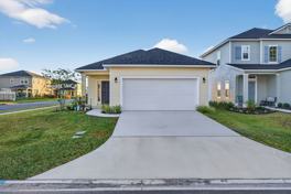 The great room features a stylish single tray ceiling and opens through a dramatic 9080 triple slider to the covered lanai, creating the ideal indoor-outdoor living experience. LVP Flooring adds warmth and durability throughout all common and wet areas. Located in a sought-after natural gas community, this home combines comfort, efficiency, and designer touches throughout.