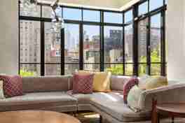 Exquisite 5-Bedroom Residence at 130 West 12th A truly rare gem in the heart of the West Village, this expansive five-bedroom, four-bathroom residence offers approximately 3,700 square feet of impeccably designed living space, blending classic architectural charm with refined modern finishes. Iconic Views and Light-Filled Interiors Perched above the treetops, this stunning home boasts sweeping panoramic views of both uptown and downtown skylines, including the Empire State Building, One World Trade Center, and the architectural beauty of the West Village. Oversized casement windows and double exposures flood the open-concept living and dining room with natural light, creating an inviting and airy ambiance for both everyday living and entertaining. Sophisticated Layout for Modern Living The thoughtfully designed floor plan includes a grand foyer that opens into a spacious living and dining area featuring elegant prewar beamed ceilings and beautifully finished Venetian plaster walls. A chef's eat-in kitchen is outfitted with top-of-the-line appliances-Sub-Zero, Miele, and a 6-burner stainless steel Viking range plus sleek Glassos countertops, and abundant natural light from multiple windows. A separate bedroom wing, anchored by a den, offers four bedrooms and three bathrooms offering both privacy and flexibility. The fifth bedroom adjacent to the main living area can also serve as a den or office, accompanied by a full bath. Plus, there is a dedicated laundry room with a full-sized washer/dryer. Luxurious Primary Suite The serene primary suite features an oversized bedroom with sweeping views, a beautifully appointed bathroom with Palissandro Blue marble and radiant heated floors, a dressing area with walnut veneer cabinetry and a primary hallway closet with custom walnut sliding panels and sandblasted glass. Additional Features Zoned four-pipe HVAC system for individualized climate control. Two private storage units are included. Thoughtful built-ins and ample storage throughout. Originally built in 1941 and masterfully redeveloped in 2012 by Rudin Management as part of The Greenwich Lane development, 130 West 12th Street is a premier prewar condominium that marries historic elegance with sustainable, contemporary design. Residents of 130 West 12th enjoy a landscaped rooftop with sweeping city views and a private, windowed fitness center. This exceptional home where timeless elegance meets modern luxury offers a rare opportunity to live at 130 West 12th in the West Village. This apartment can be rented either furnished or unfurnished.