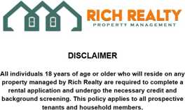 *Rich Realty requires all tenants to obtain a renter's liability insurance policy in the amount of $100,000*