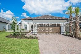 Light and bright waterfront home ready for move-in! Offering a flowing open floorplan with neutral finishes and gorgeous wood-look tile flooring, this is the blank slate you have been searching for to quickly become your new home sweet home. The spacious eat-in kitchen is fully equipped with sleek stone countertops, stainless steel appliances, and an oversized island with sightlines into the living room so your home chef never has to miss a moment. Easily extend your living space outdoors to the large, covered patio with serene water views perfect for living or dining al fresco! The primary bedroom boasts an elegant tray ceiling, bay window, walk-in closet, and luxurious en-suite bathroom with everything you need to relax and recharge after a long day. Private bathrooms in both the secondary bedrooms guarantee that every member of the household can live comfortably. Don’t miss your chance to call this newer built home your own, schedule a showing today! HOA application fee of $100 with a 55+ age restriction in place. No pets.
