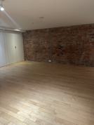 The suite features striking exposed brick walls, polished concrete floors on the main level, and hardwood flooring upstairs, complemented by custom millwork closets and cabinetry. The modern kitchen is equipped with stainless steel countertops, a built-in cabinet fridge and dishwasher, and a stainless steel built-in oven with electric range. Additional conveniences include a 4-piece bathroom, in-suite washer and dryer, and a dedicated in-suite storage room.