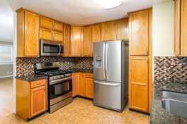 Spacious kitchen equipped with updated appliances, ample cabinet space, and a convenient layout to make cooking a breeze.