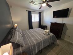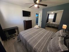 The house is cozy with two common areas and a kitchen fully furnished. Kitchen includes a blenders, coffee maker, silverware, tupperware & pots & pan, etc. Dedicated beverage fridge & a shared seventy inch TV! BBQ Grill outside and a yard with room for big improvements down the road. Lots of cabinet space for you in the kitchen & an in unit washer and dryer. Currently street parking is available.