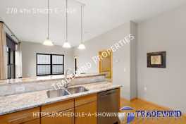 Stunning 2 bed, 2 bath corner unit in prime lowertown location at the Lot270 condos. Unit features an amazing view of the river! You are within walking distance to all local bars, restaurants, CHS Field, farmers market, parks and trails. Secured building w/elevator. Unit features bright and ample sized spare bedroom. Beautiful tiled kitchen with SS appliances and breakfast bar top that opens up to the living room w/dual access to the balcony from both the bedroom and LR. Primary bedroom features 3/4 bathroom w/walk-in shower. Full bath in hall plus large laundry closet with in unit W/D. 1 heated underground parking stall. Building offers community/sitting room and workout room. Available 10 days after app approval per HOA rules/board approval with 24 month lease terms. Tenant pays gas & electric. Pet friendly - dogs/cats ok, max 2 w/combined MAX weight not to exceed 50lbs at full age. $250/pet deposit per pet. Every pet/animal must go thru prof screening process and apply. The fee is $30/pet, paid directly to the 3rd party screening vendor. $20/pet app fee paid at time of move in. Application fee: $45/ adult non-refundable. $500 move in/out fee paid at time of move in. Information deemed reliable but not guaranteed. Renters insurance required. Section 8 not approved. Deposit = one month's rent. Min credit score: 600.