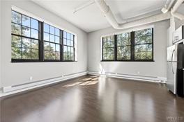 Stunning 1 bed, 1 bath corner unit at the historic Bethune Lofts. Formerly the home of the Buffalo Meter Company, Bethune Lofts features 87 condo units located just steps from Hertel Avenue & University at Buffalo, South Campus. This bright & spacious end unit boasts soaring ceilings, southern & western exposure for incredible light & sunsets, & an ideal unit location w/ no direct neighbors above. This fabulous open-concept living space features an updated kitchen w/ granite counters, stainless steel appliances, sleek dark wood cabinetry & generous storage. The large Living/Dining area offers newer luxury vinyl flooring, fabulous oversized windows, & wonderful neighborhood views. The primary bedroom features a closet w/ organizers, plush wall/wall carpeting & an overhead ceiling fan. The large full bathroom boasts tile flooring, generous storage, & a large walk-in shower. Additional unit highlights include: Central Air, Pets allowed, Open Parking available, & Heat included in your HOA. The Bethune lofts offers incredible amenities & carefree living by providing an on-site fitness center, secure bike storage, laundry facilities, stylish common areas, secured entry & gated parking. On-site storage space available for an additional fee. The Bethune Lofts offers quick access to all of Hertel Avenue's amenities, the Buffalo Niagara Medical Campus, UB South Campus & McCarthy Park.