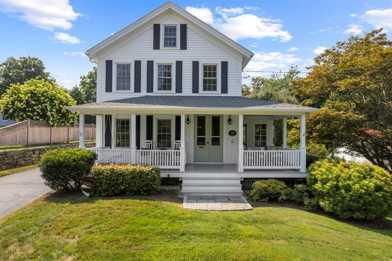 Reserve your summer 2026 accommodation at the notable Farmhouse in Downtown Mystic, available for month-long stays from June to September. This beautifully renovated 1876 Farmhouse includes everything you will need to enjoy a comfortable and memorable vacation experience. Located within walking distance to Downtown Mystic, the Seaport, restaurants, shops, and other local attractions, this property provides exceptional convenience. Guests are invited to enjoy a spacious wrap-around covered porch, thoughtfully appointed with rocking chairs, porch swing, as well as table and chairs. The Farmhouse features exceptional outdoor amenities, including 0.32 acres of landscaped grounds, stone walls, an outdoor fireplace accompanied by Adirondack chairs, and outdoor deck with seating, a stone patio with dining table, propane gas grill perfect for al fresco dining. Step inside to a delightful and welcoming interior that blends traditional charm with modern amenities such as central air conditioning. The 1st floor includes a fully equipped kitchen, dining room with a large farm table and gas log fireplace, an enclosed three-season porch, a living room with a flat-screen TV, and full bath with soaking tub. On the 2nd floor, there are three bedrooms: a primary bedroom with a plush king-size bed and flat-screen TV, and two additional bedrooms with queen-size beds, full bath and family room.
