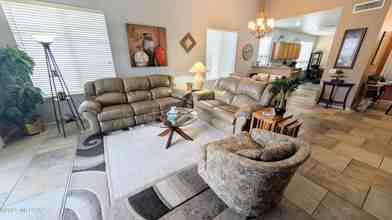 BEAUTIFULLY FURNISHED San Remo Villa with Wonderful Mountain Views! Split Floor plan, Granite Counters, Stainless Appliances, Freshly Upgraded, and Well-maintained. WE DO FLEXIBLE LEASES! Do you need a place to ''Glamp'' while you remodel your home, shop for a resale, complet your new construction, or just want to thaw out in our warm Arizona Sunshine? We will coordinate with your timing needs. Winter Rate/One month shown. Also available for Long-term- obviously lower rate. Contact Listing Broker today! AVAILABLE BEGINNING 12/15/25.
