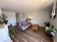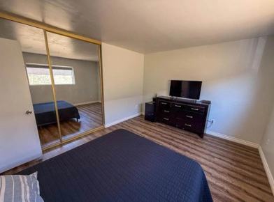 Upstairs unit with modern upgrades! Features include a full-size washer & dryer in-unit, quartz countertops, stainless steel appliances, vinyl plank flooring, blackout shades, and an upgraded bathroom. Bright open layout in a gated community with easy access to freeways, shopping, and dining. Turnkey and move-in ready!
