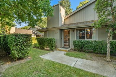 This ground-floor corner lot unit, free from neighbors above and surrounded by greenery has a lot to offer: well-maintained by owners, freshly professionally painted in June 2024, lots of natural light, great open floor plan, convenient inside laundry with multiple closets, a master bedroom with an ensuite bath and two large double closets, well-proportioned dining and living areas, newer double-paned windows, AC, hot water included, granite countertops, new master bathroom shower doors and more. There is also ample storage space in the kitchen, second bedroom, bathrooms, and an extra closet in the hallway. All appliances are included. Enjoy a low-maintenance fenced patio with a bonus attached storage, offering privacy without direct views from neighbors, ideal for relaxing and entertaining outdoors. Community pool across the street. Walking distance to shops and restaurants. Convenient access to highways 85, 87, 101, and 280 for commuters.