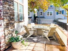 Discover the perfect blend of modern luxury and everyday comfort in this bright, spacious end-unit townhome, ideally located in the heart of Silicon Valley. The property features elegant wood shutters throughout. The living room boasts 14-foot ceilings, expansive windows, and motorized shades that flood the space with natural light, creating a warm and inviting ambiance. It also includes new hardwood floors, a cozy gas fireplace with a contemporary wood mantel, and custom wood cabinets. For entertainment, the living room includes a built-in 65 Samsung TV, a Sonos soundbar and subwoofer, and a stylish 36 round mirror. Step outside to a private porch, complete with a 4-piece Adirondack chair set and a fire pit table, ideal for relaxing or entertaining. The main level offers a seamless flow of space, including a dining area, an upgraded kitchen with new hardwood floors, stainless-steel appliances, a garbage disposal, a farmhouse sink, and a hot water and filtration system. The guest suite features new carpet and a built-in closet organizer, making it versatile for visitors, in-laws, or a home office. The adjacent bathroom has been updated with new tiles, a modern toilet, and new lighting fixtures. Upstairs, the luxurious primary bedroom includes new carpet, a spacious walk-in closet, dual sinks, a tub, a frameless shower glass enclosure, a modern toilet, and new lighting fixtures. Two additional bedrooms, also with new carpeting, share a full bathroom with upgraded features. The upstairs laundry room, complete with a modern washer and dryer, offers added convenience. The home has a two-car attached garage with wall shelves and a spacious storage room for extra space. The community offers exceptional amenities, including a pool and clubhouse. Walk to Seven Seas Park (plenty of playground for children), grocery stores, and public transportation such as the VTA Light Rail with convenient access to Caltrain stations. Located minutes from top Silicon Valley employers (Apple, Google, Meta, Amazon, Nvidia, Cisco, and LinkedIn), the property enjoys a prime location. Nearby, the San Francisco Bay Trail offers 100+ miles of scenic trails for hiking, jogging, and biking. Levis Stadium, Agnew Park, and Lick Mill Park provide additional outdoor recreation opportunities, making this home the perfect balance of urban living and nature access.