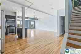Welcome to this beautifully updated, ultra-modern apartment featuring gleaming hardwood floors throughout and a bright, open-concept living and dining area perfect for entertaining. The stunning kitchen boasts rich dark wood cabinetry, granite countertops, stainless steel appliances, and a center island with pendant lighting and bar seating. A convenient powder room with laundry area completes the first floor. Upstairs, retreat to a spacious yet cozy primary bedroom with a generous walk-in closet and a private en-suite bath featuring tile flooring, granite counters, and a stall shower. An additional nicely sized bedroom and a second full bath with 24" tile complete the upper level. Step outside and enjoy your morning coffee on your private balcony!
