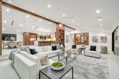 This stunning 4,200-square-foot residence is situated in a serene cul-de-sac within a highly coveted neighborhood in the Valley. Please be advised that we strive to maintain a peaceful atmosphere on our street- this is not a party home. Upon arrival, you'll immediately notice the seclusion provided by the raised driveway and fully enclosed property. Passing through the 8-foot solid wood front door will lead you into a sophisticated foyer with a bird's eye view of the expansive living space, highlighted by an open layout. A hallway to the right will guide you to four generous bedrooms, each boasting its own full ensuite bathroom and walk-in closet. Master bedroom features a fireplace, walking his and hers closets and breath taking master bath. Custom tile work, soaking tub and walk in shower with dual shower heads. The kitchen is equipped with everything you need to whip up a culinary masterpiece, including premium Thermador appliances. With ample room for multiple chefs, there's also a bi-folding glass door that invites you to the backyard oasis complete with a heated pool, sun deck, lush lawn area, and a covered al fresco dining space featuring a built-in BBQ. Unwind in the living room furnished with a comfortable sectional that accommodates up to eight people. Meanwhile, an adjacent sitting area offers four plush armchairs accompanied by a wall-mounted wine rack. Massive sliding glass doors invite natural light into the living room while establishing an effortless indoor/outdoor flow. The right wing of the house accommodates four bedrooms, whereas towards the left wing, there's a secluded bedroom and a small office enclave near the living room. It works as an excellent arrangement for in-laws or any other guests who'd like to maintain some distance from the primary living quarters. The backyard is perfect for entertaining or unwinding with family and friends. A sizable grassy area is accompanied by a gourmet BBQ station for the outdoor chefs in your life. The covered patio creates a cool and covered enclave for relaxing cocktails in any weather. The heated pool is set among an array of lush foliage and includes its own seating area, two reclining deck chairs, and a spa - complete with total seclusion due to the surrounding high fencing and towering tree cover. The Royal Oaks home in Encino is a breathtaking oasis above L.A. You will admire the incredible balance of art and practicality. This home boasts 14 ft. ceilings, posh furniture, and a chef’s dream kitchen that seamlessly blends indoor and outdoor living with bi-fold glass doors leading to a heated pool, sun deck, grassy areas for play, and a covered dining area with a built-in BBQ. Luxurious bedrooms await when it's time to retreat after a day of relaxation and enjoyment.