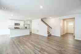 The main level features an open-concept design perfect for entertaining. The kitchen is fully equipped with stainless-steel appliances, granite countertops, and a center island, opening directly to the spacious family and dining area.