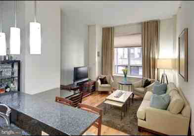 Perfect layout with soaring 12- foot ceilings!!! 2 bedroom, 2 bathroom condo that has been impeccably maintained by its owner. This home has been freshly painted throughout and the owner just put in brand new carpeting in bedroom areas. ( the rest of the condo are hardwoods). Step into the expansive kitchen, featuring granite countertops, stainless steel appliances, under-cabinet lighting, and a dining bar illuminated by overhead lights. This space seamlessly flows into the combined dining and living area, making it perfect for hosting gatherings. The condo's south side is adorned with large windows that offer picturesque city views. The laundry room is equipped with energy-efficient washer/drier and provides ample storage space. The guest bedroom includes an en-suite bathroom accented with light marble finishes. The spacious master bedroom is a true retreat, offering two closets and a luxurious marble bathroom with dual sinks, a separate soaking tub, and a seamless glass shower enclosure. Each bedroom is fitted with custom-made curtains designed to block out sound and light, ensuring comfort and privacy. The Aria offers a full suite of amenities, including a concierge service, 24-hour security, a fitness center, an owner's lounge, a pet spa, a dog walk area, and a business center, among other facilities. This unit is unique to the building, featuring 12-foot ceilings and oversized windows that enhance its appeal.