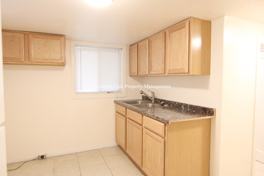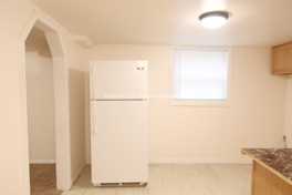 The kitchen is equipped with a stove and fridge. There is a 3/4 bathroom and a shared laundry with a washer and dryer.