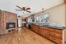 Traditional ranch in University Hills. Main level has a large kitchen, hardwood floors and plentiful morning sunshine in the beautiful kitchen! The kitchen offers new cabinets, and quartz counters, two under mounted sinks and a long counter with lots of windows. High-end appliances, including new gas stove, and stainless steel dishwasher. The main level also offers a living room with a full wall of build in shelves, three nicely sized bedrooms and a full, updated hall bathroom.