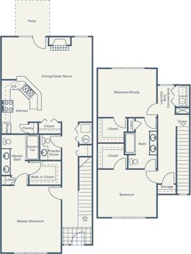 2 Full, 1 Half Bath
