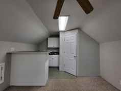 2nd floor studio loft located next to UCO campus. Fenced yard with a gorgeous new deck and view. Watch the sunset from your 2nd floor deck. Kitchen with hotplate, sink, microwave, and refrigerator. Bathroom with shower, sink, and toilet. Air conditioning and heat.