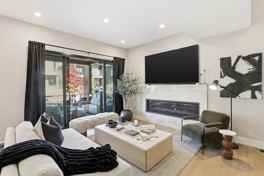 The main floor features a spacious, light-filled living area with tall ceilings, upgraded flooring, and large windows that enhance the home’s modern aesthetic. The gourmet kitchen includes quartz countertops, stainless steel appliances, sleek cabinetry, and an oversized island—perfect for cooking, gathering, and entertaining. A private outdoor patio extends your living space and provides the ideal place to relax year-round.