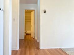 This unit has hard flooring in kitchen and bathroom. The kitchen remodeled with granite countertops, full size stove, dishwasher & refrigerator. There is also a walk-in closet and additional storage room in-unit.