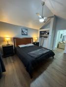 The toilet and bathroom is located just outside the bedroom where the washer and dryer are located, so your laundry won't be a problem.