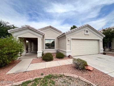 ALL NEWER PAINT THROUGHOUT, NEWER AC! ALL APPLIANCES INCLUDED, SOLOR TO REDUCE ELECTIC COSTS!! This is a beautiful 3-bedroom residence nestled in Saguaro Ranch. You're greeted by an inviting living area offering bountiful natural light, vaulted ceilings, and designer palette. The fabulous eat-in kitchen boasts sleek granite counters, newer stainless steel appliances, wood cabinets, a pantry, and a peninsula complete with a breakfast bar. The master suite showcases a generously sized closet and a private bathroom for added comfort. Enjoy relaxing on sunny afternoons in the harmonious backyard featuring a covered patio, a manicured landscape, a cozy firepit, and a charming stone waterfall! Don't miss out on this one! New water heater, new R/O system & water softener, & new garage door!