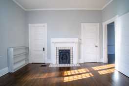 Inside, the historic home features hardwood floors and decorative fireplaces throughout, adding warmth and character to each room. Living room includes a built-in tv to better utilize the space.
